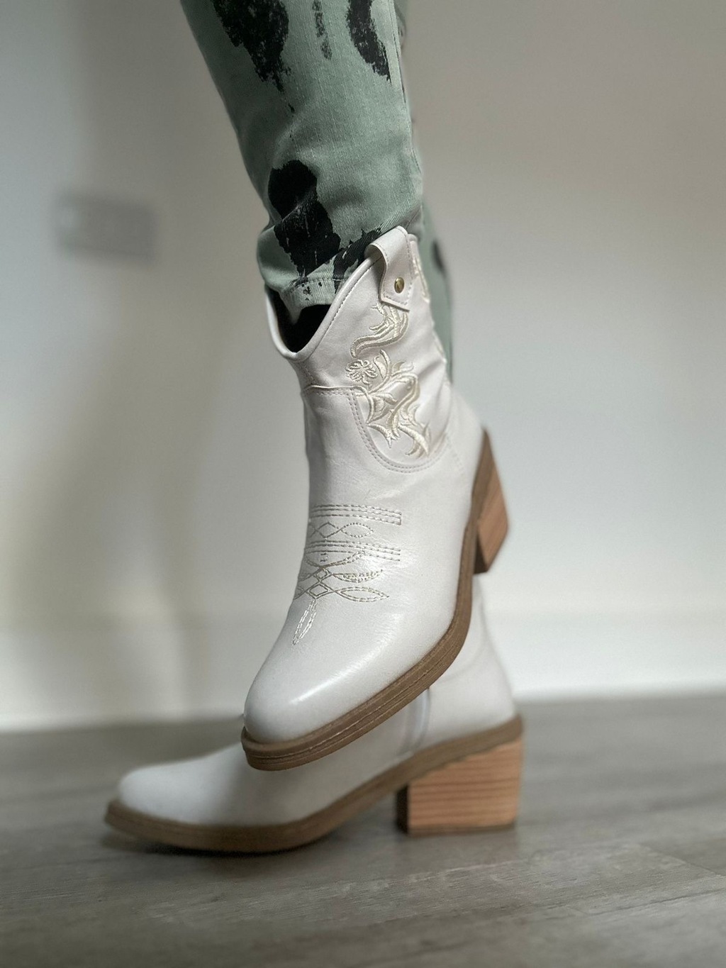 ¡Descubrí nuestras nuevas Texanitas Bordadas cortas en color blanco, diseñadas para ofrecerte la máxima comodidad y estilo! Con un práctico cierre al costado, son súper fáciles de calzar. Cada par presenta un delicado bordado en hilos de color marfil en el costado y el empeine, un detalle encantador que las hace únicas.